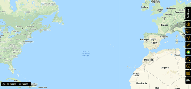 Now, click on the map with the left mouse button to set the first point of the desired segment to measure. Click on the map to set the second point and see the distance specified in nautical miles (NM) in the black label between the two points.