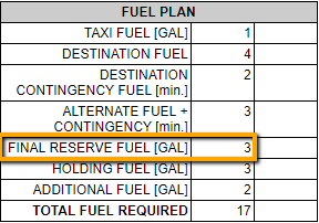 Once these steps are completed your planned flights will calculate the Final Reserve Fuel and incorporate these results into the Flight Log.